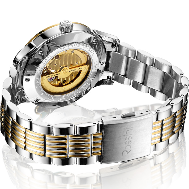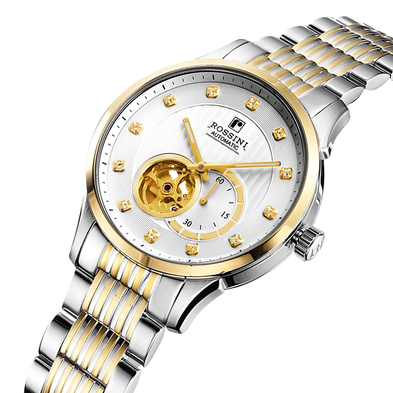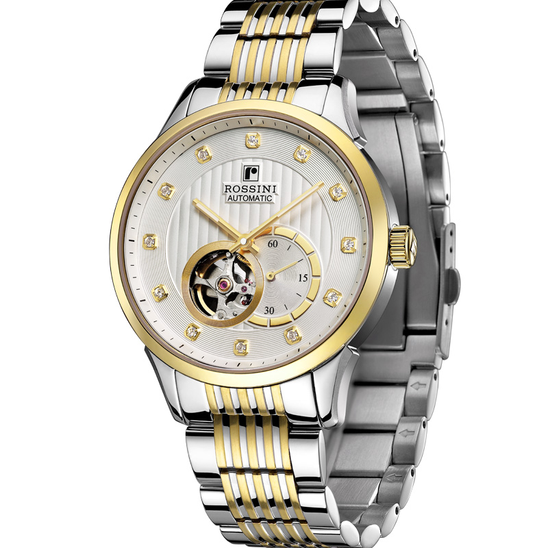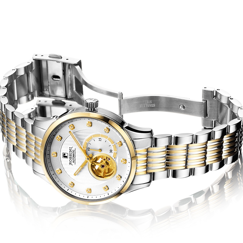 罗西尼(ROSSINI)手表 双子星系列 钢带 商务风格 防水 情侣 机械男表 6485T01A