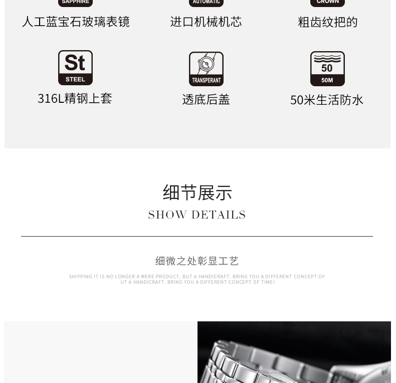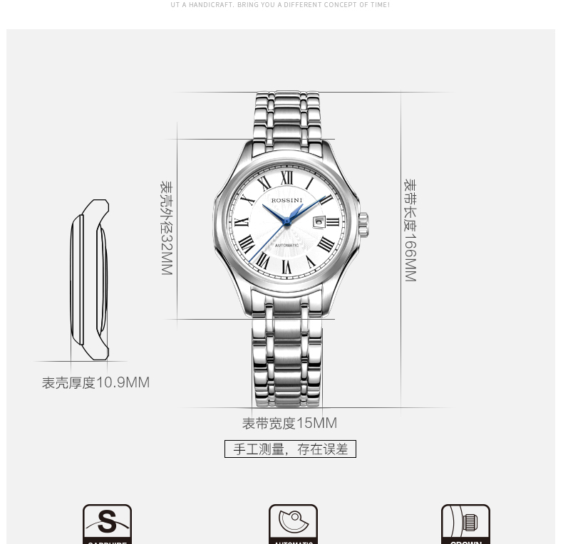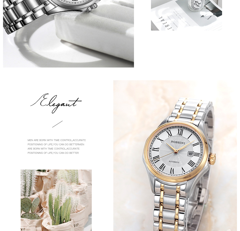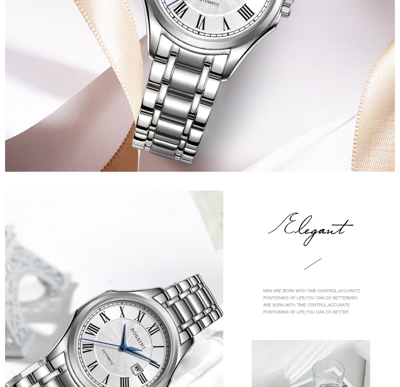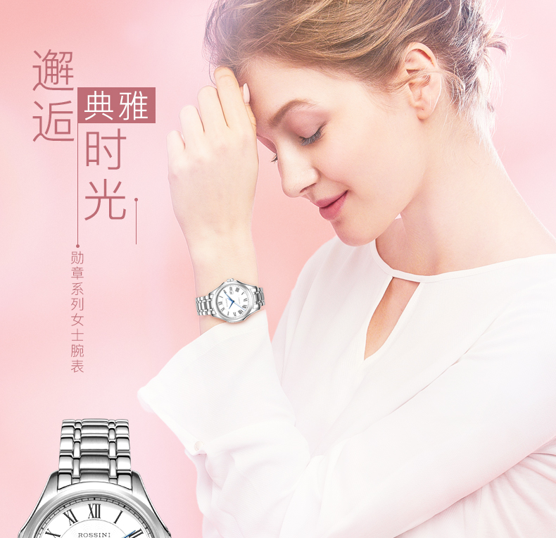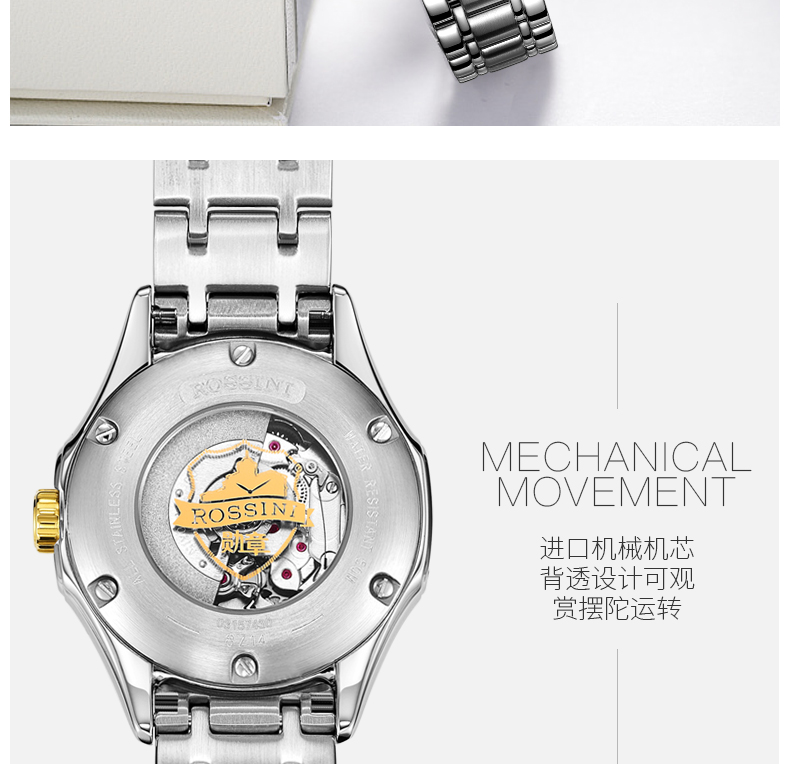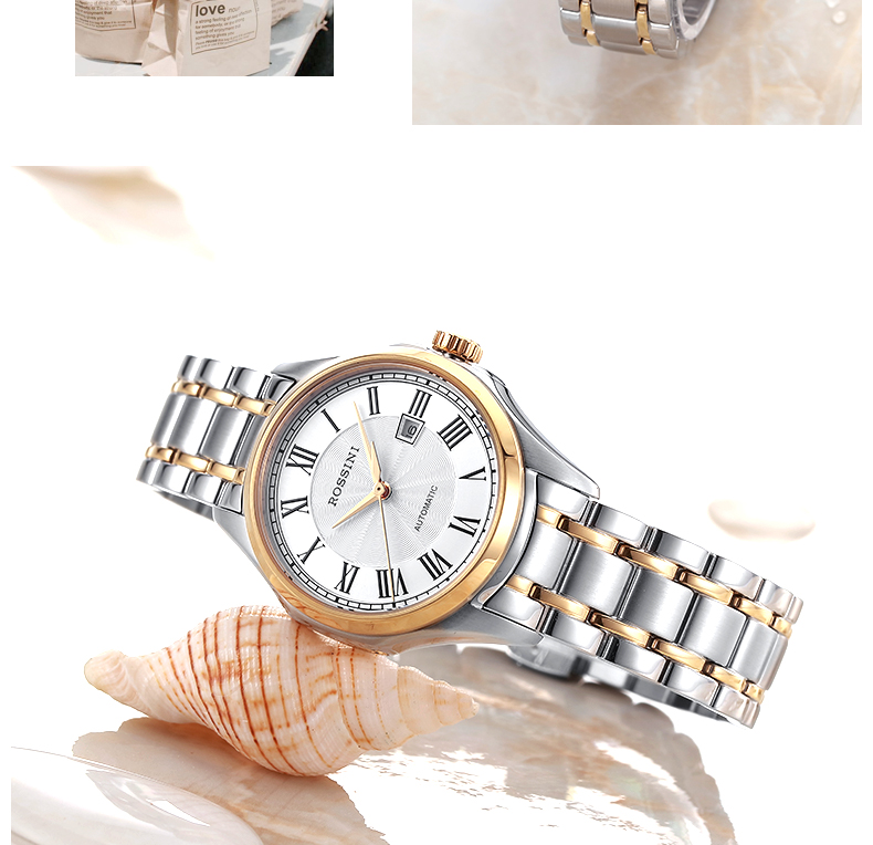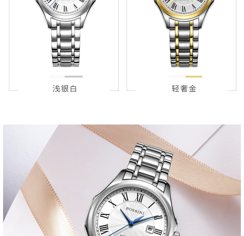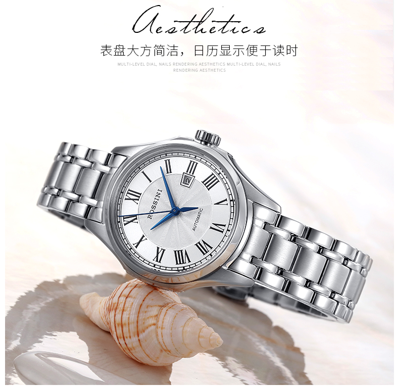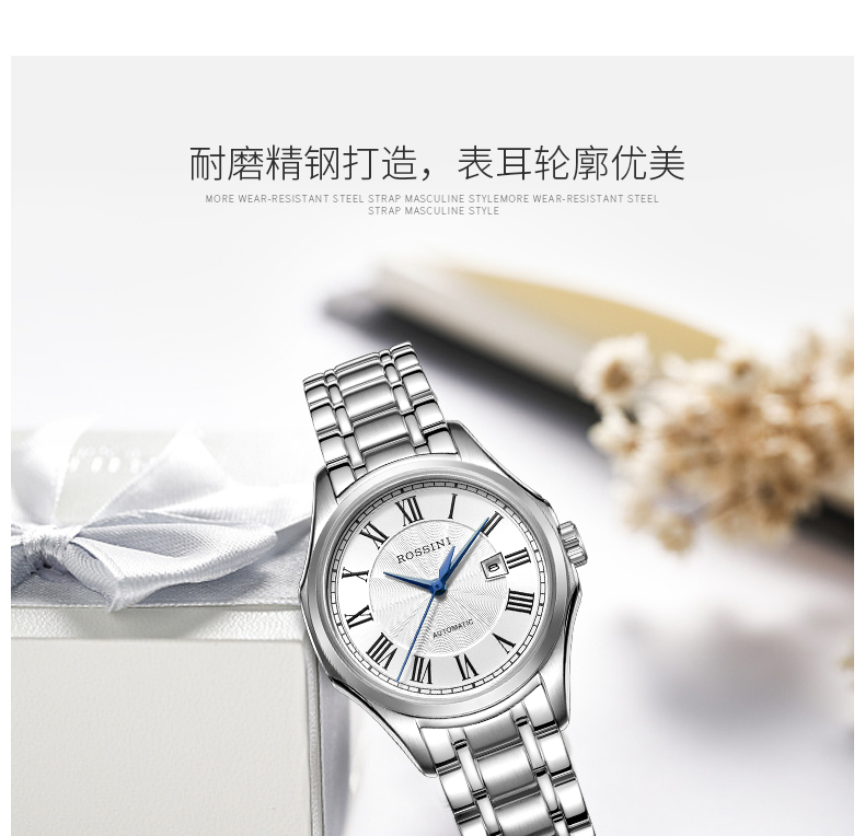 罗西尼(ROSSINI)手表勋章系列商务风格情侣对表钢带机械女表8714