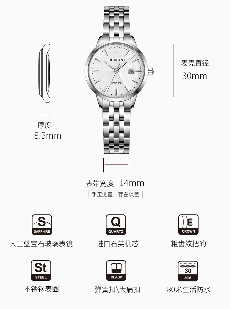 罗西尼(ROSSINI)手表启迪系列钢带商务情侣石英表5911&5912(特价表)