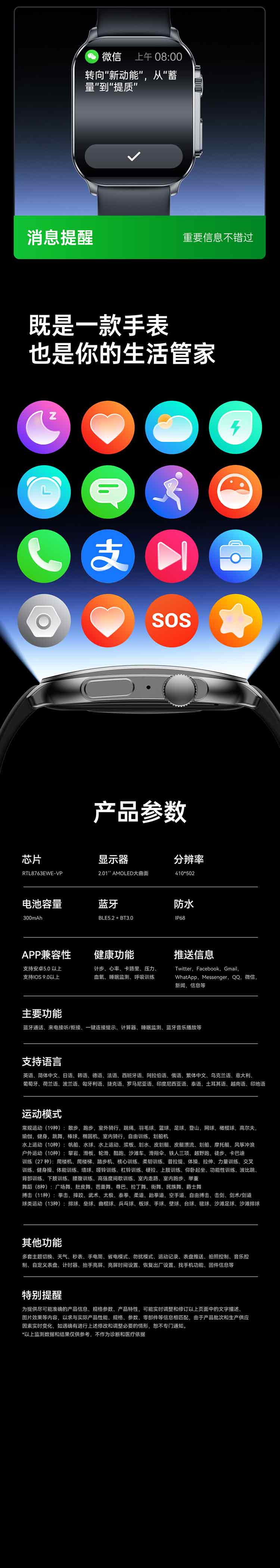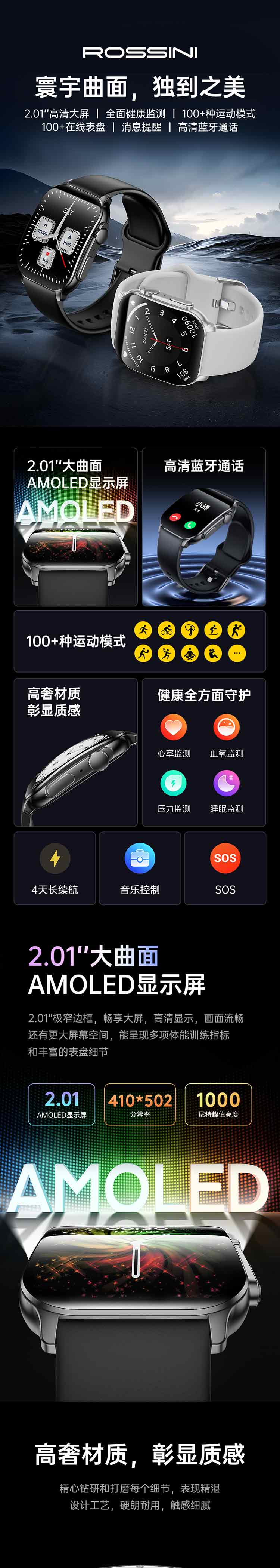罗西尼新品防水蓝牙运动智能表ZN1487